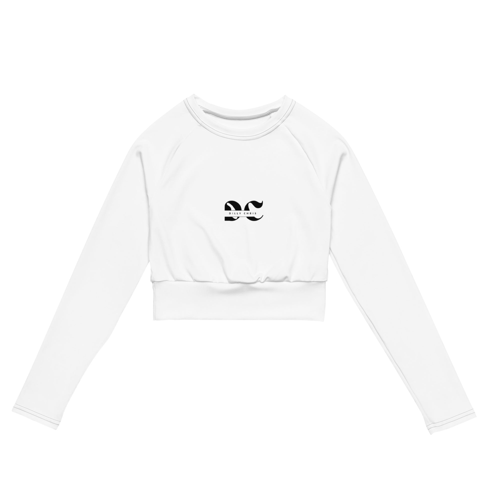 This long-sleeve crop top is made of recycled polyester and elastane, making it an eco-friendly choice for swimming, sports, or athleisure outfits. The crop top has a tear-away care label and a wide, double-layered waistline band for a comfortable fit.